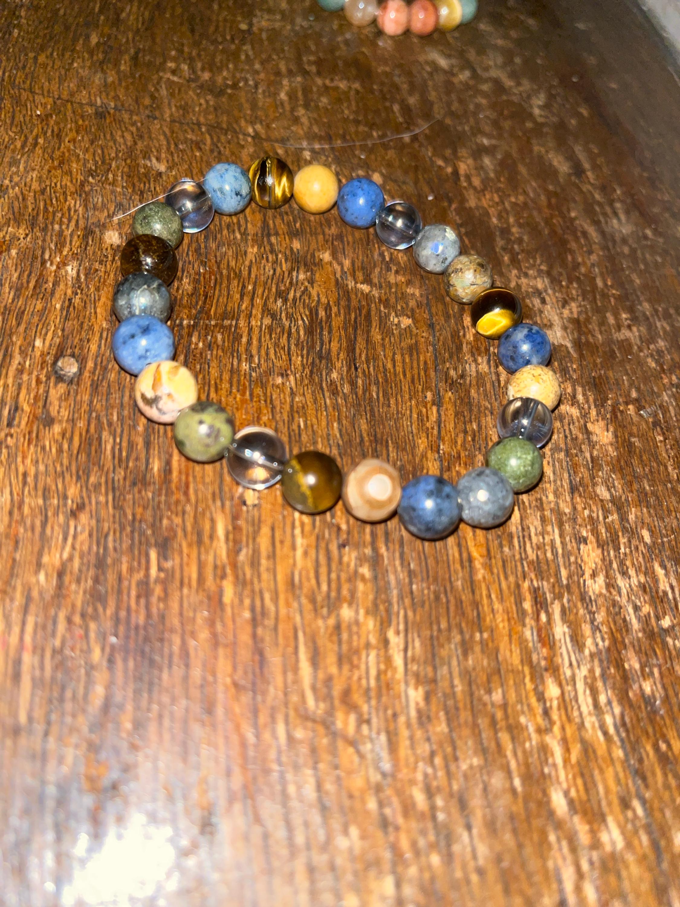 This wonderful bracelet is both a complete seven chakra bracelet and empath/negative energy protection bracelet. We've designed this piece with earthy and grounding colored stones. Tucked into these 8mm sized stones is an Evil Eye Agate stone for even more natural protection.