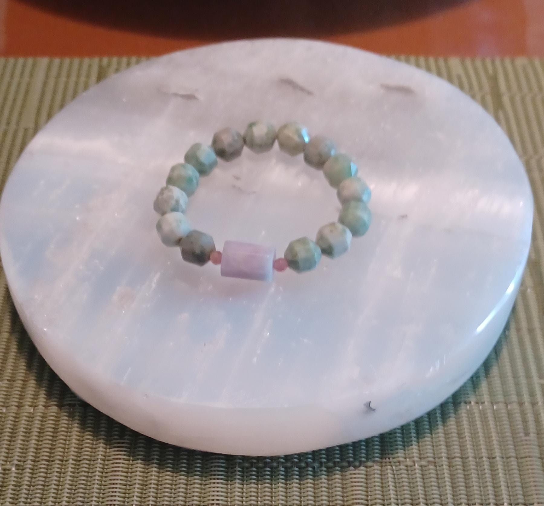 Very lovely piece. I put it on the selenite slab as pictured and left it on a windowsill after dark for a few hours before slipping it on before bed. I held it and said a positive intention before putting it on. Last night was my second night wearing it and I still had nightmares like I've been having on and off. The one last night was especially sad. I was hoping this bracelet would protect me. I'll keep working with it. I hope it's protective and comforting abilities will kick in and do it soon. 🤞 Not sure if I'm doing something wrong.
