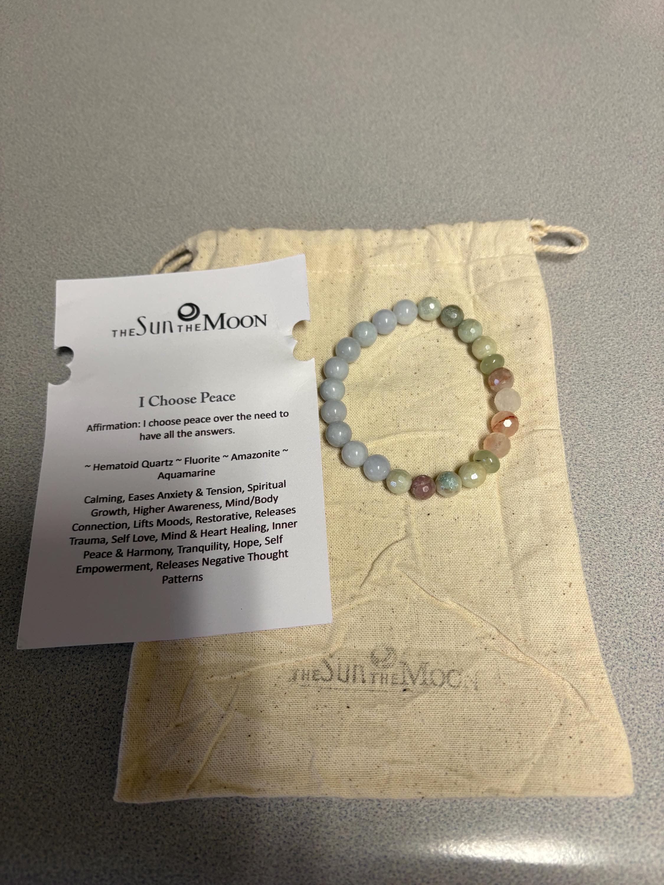 I Choose Peace Affirmation bracelet has been designed for you with 8mm sized gemstones. We've chosen these crystals for their strength in providing relief from anxiety and overthinking, allowing you to live in the present moment........peacefully and confidently.