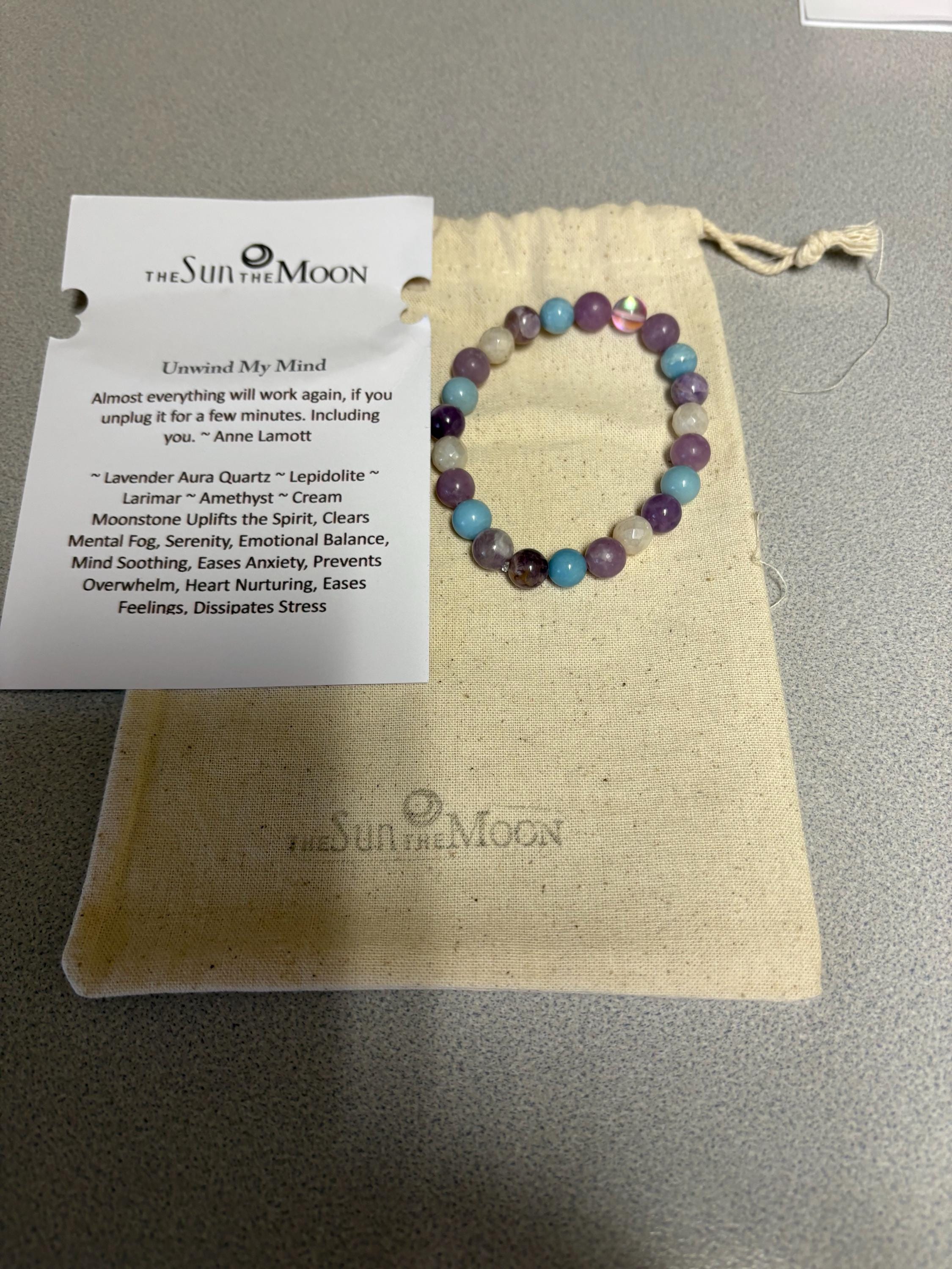 Designed with 8mm sized gemstones, Unwind My Mind addresses overthinking. tension. and the mental loops of rumination that just won’t quit. This crystal bracelet is a wearable pause button—a soothing companion to help you unplug, breathe, and come back to yourself.