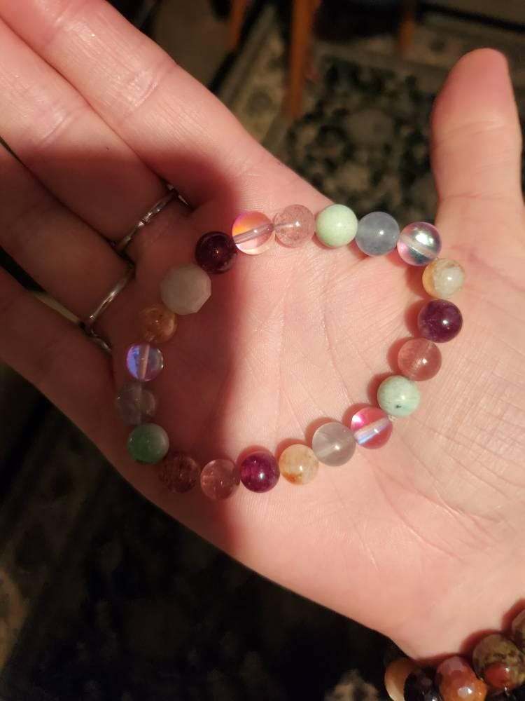 ~ Moonstone ~ Lepidolite ~ Citrine ~ Aura Quartz ~ Fluorite ~ Dragon Skin Agate ~ Strawberry Quartz