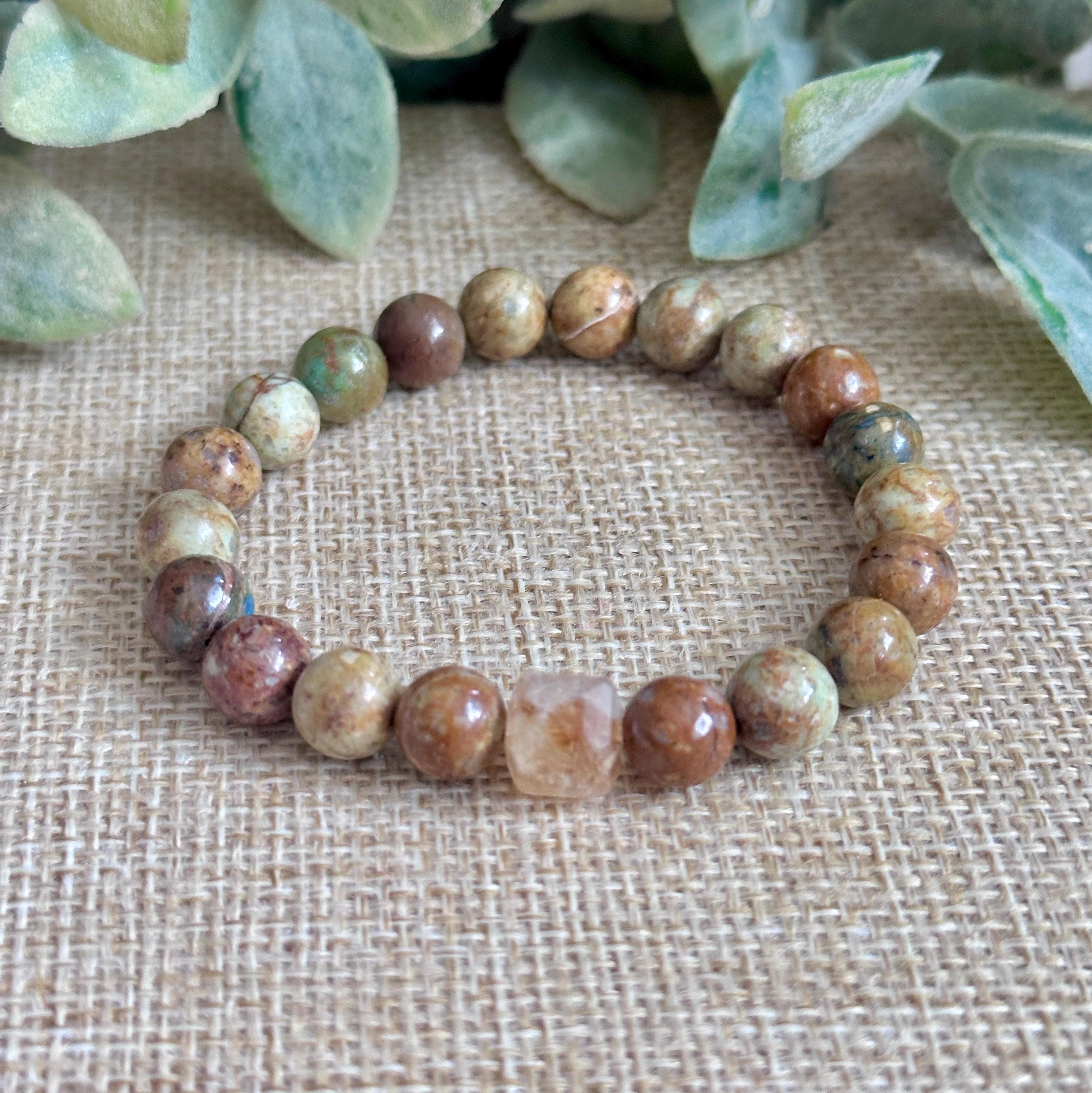 Designed with 8mm sized gemstones, our Citrine & Chrysocolla bracelet radiant joy, grounded energy, and the confidence to manifest your intentions.