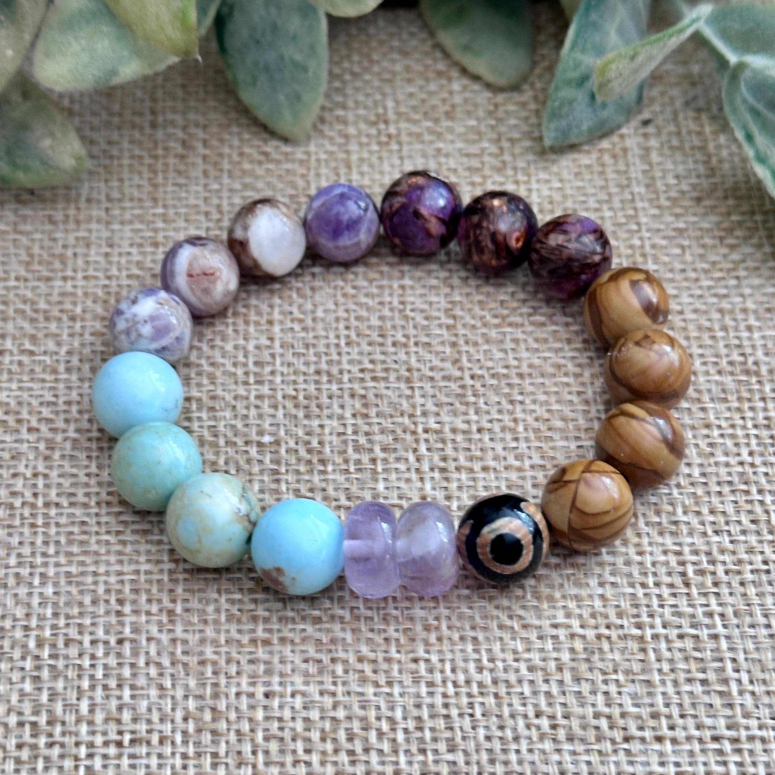 ~ Amethyst ~ Turquoise ~ Lepidolite in Bronzite ~ Wood Skin Jasper ~ DZI Agate