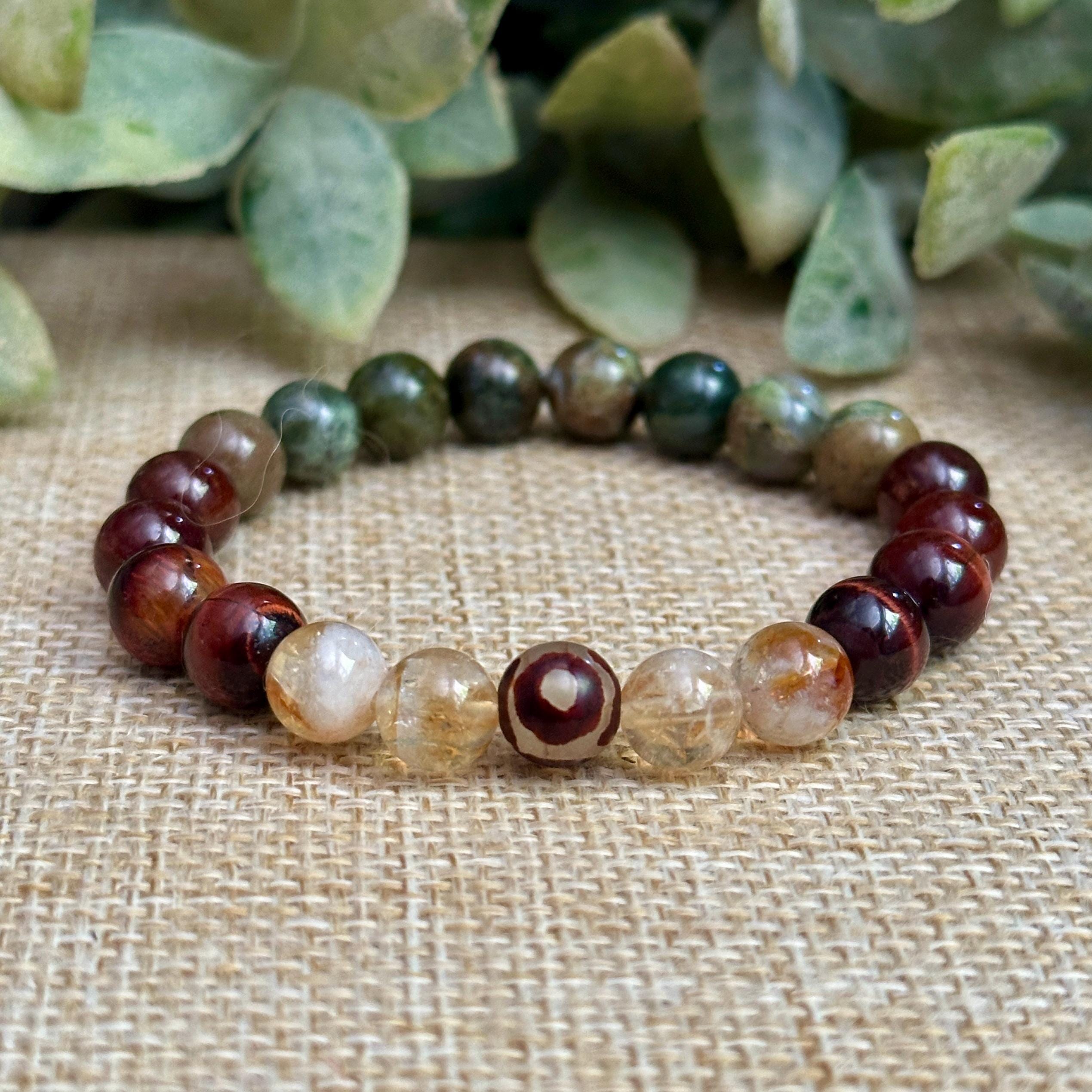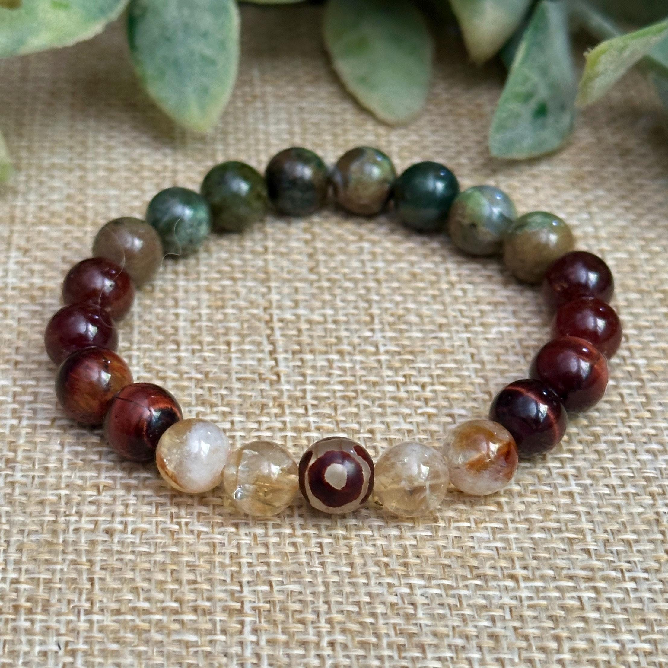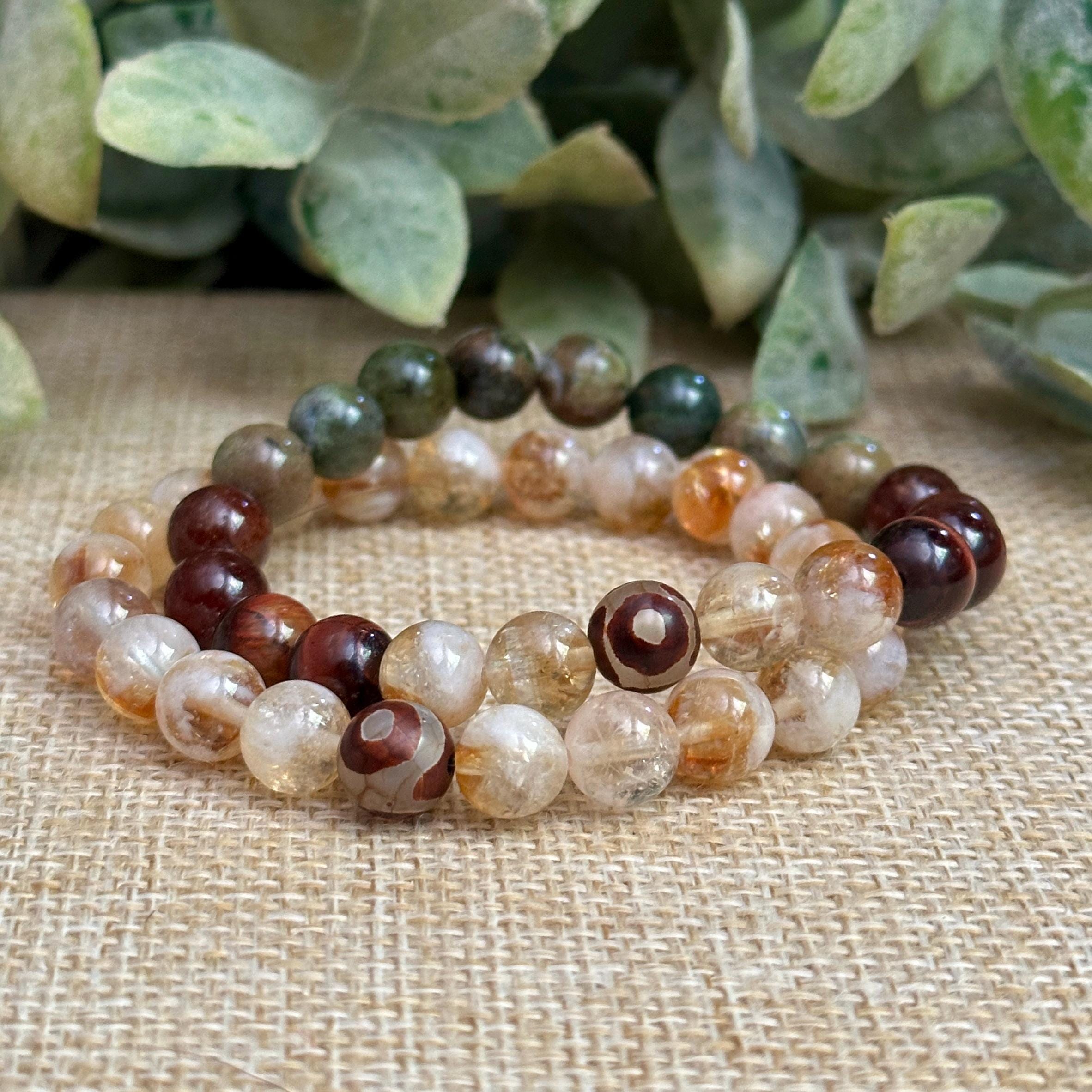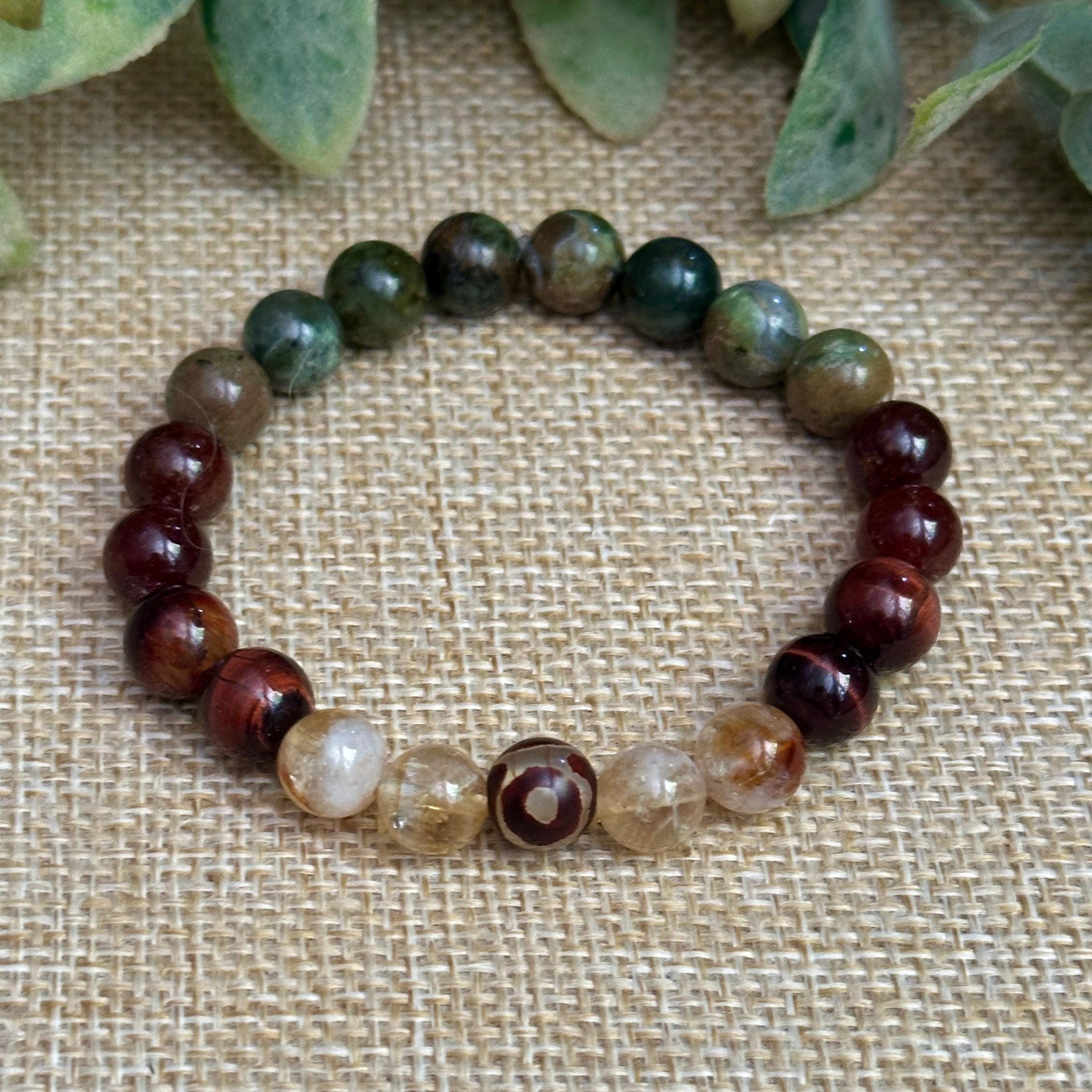 Designed with 8mm sized stones in rich autumn tones, this bracelet captures the warmth and grounding energy of September. Autumn Orchard is a celebration of ripening, grounding, and receiving the fruits of your efforts.