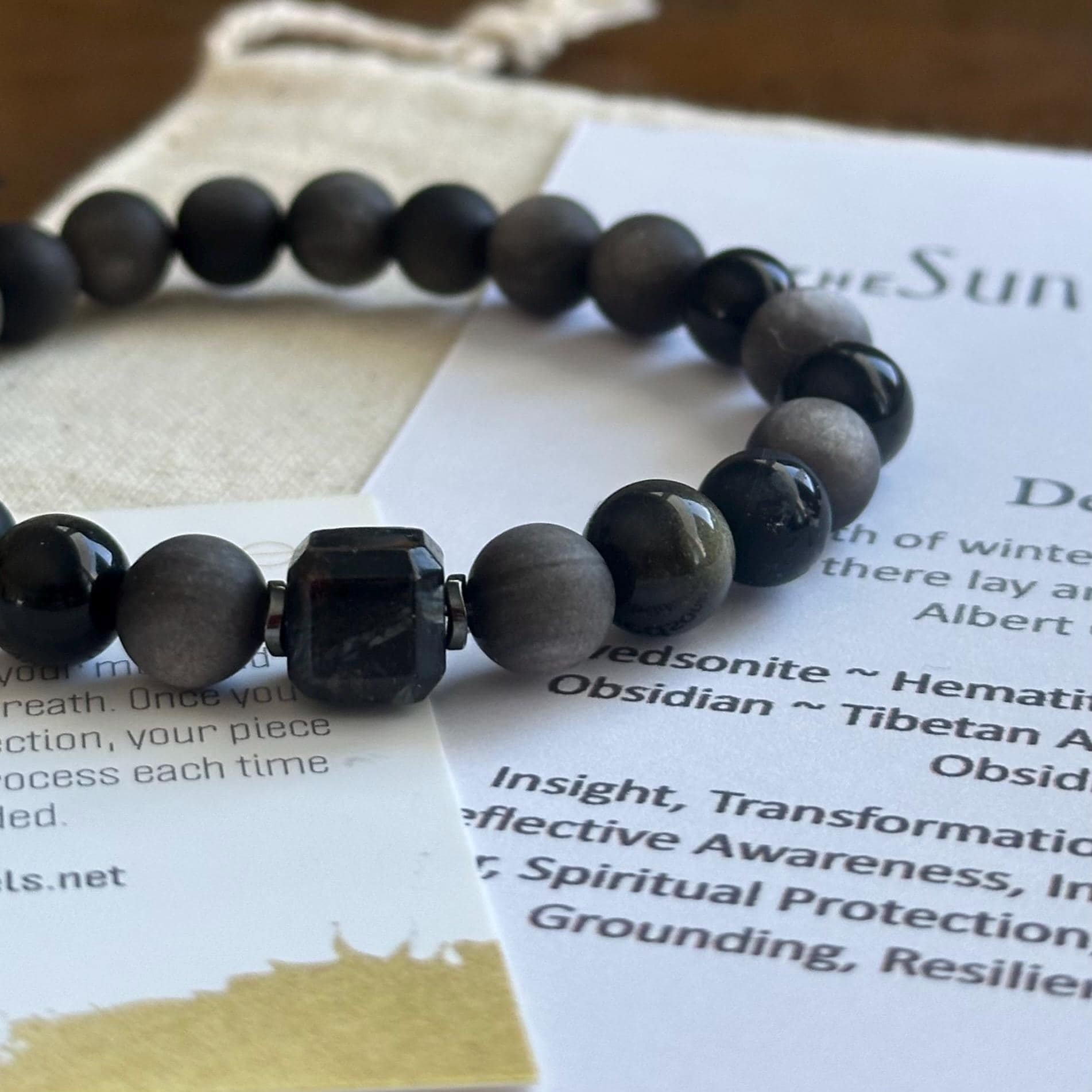 Designed with 8mm sized stones, Depth is presence without noise. A study in contrast, it pairs matte surfaces with quiet flashes of sheen to reflect the light hidden inside the dark. Lighting will bring out different glows and shines. Each stone in this piece anchors your energy while drawing you into self-awareness. It’s the kind of piece that keeps you steady when the world feels loud. Rooted in strength, reflection, and truth.