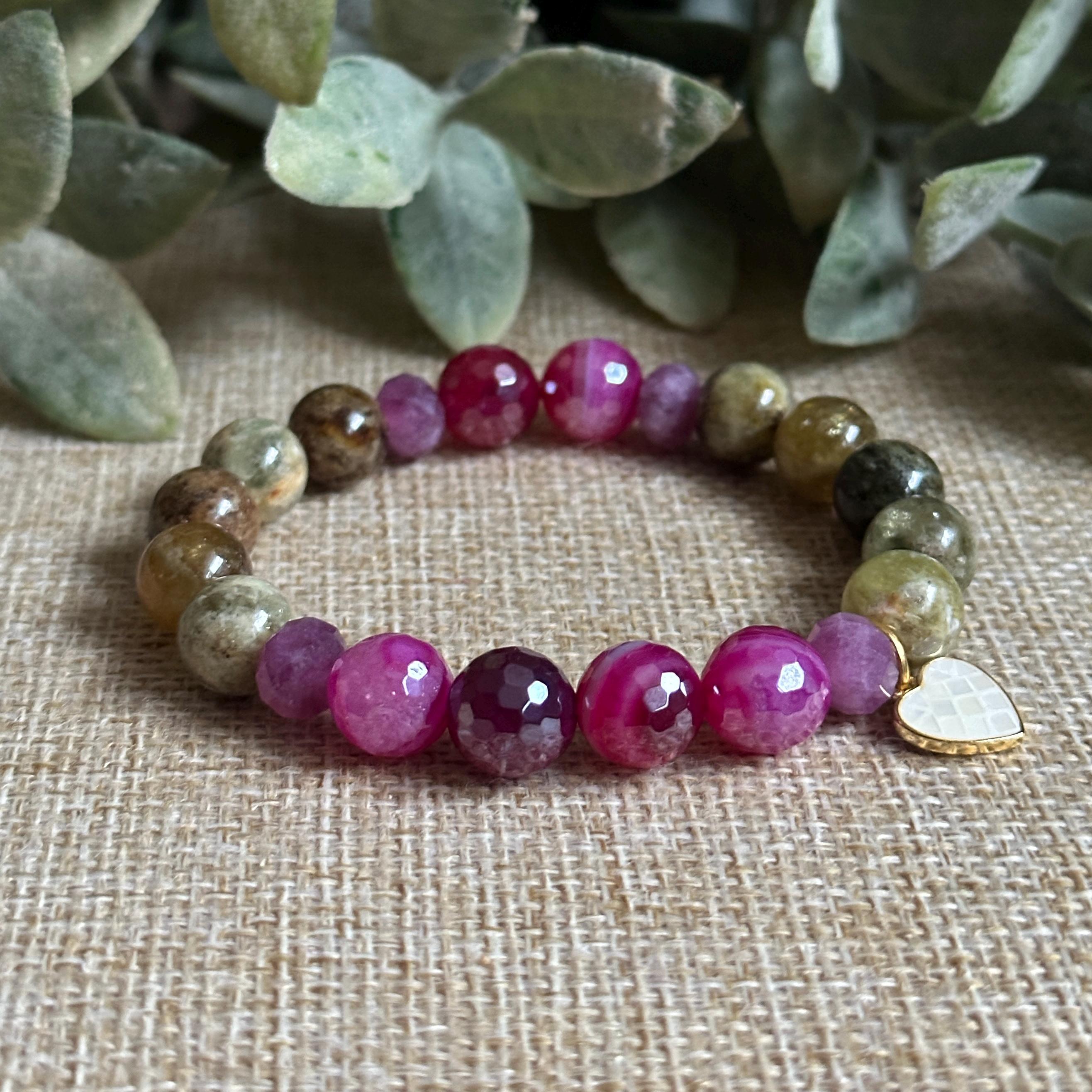 Designed with 10mm sized gemstones, this colorful bracelet will warm your heart and provide passionate, loving energy.