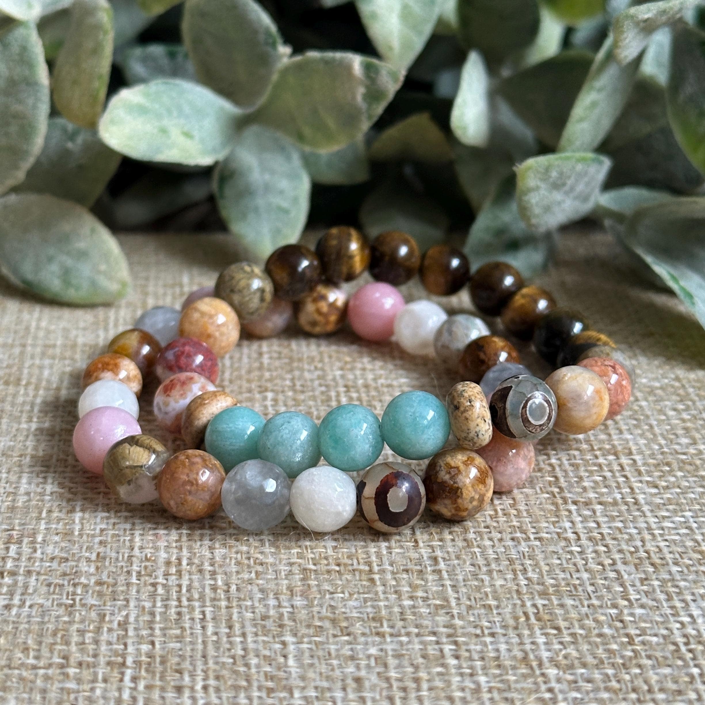 Designed with 8mm sized stones, Serene Soul is a gentle reminder that peace isn’t found in escape—it’s cultivated from within. This bracelet radiates calm, compassion, and renewal, helping you slow your thoughts and breathe deeper into the present moment. Its soothing tones reflect nature’s quiet balance, guiding your heart toward emotional clarity and soft resilience.
