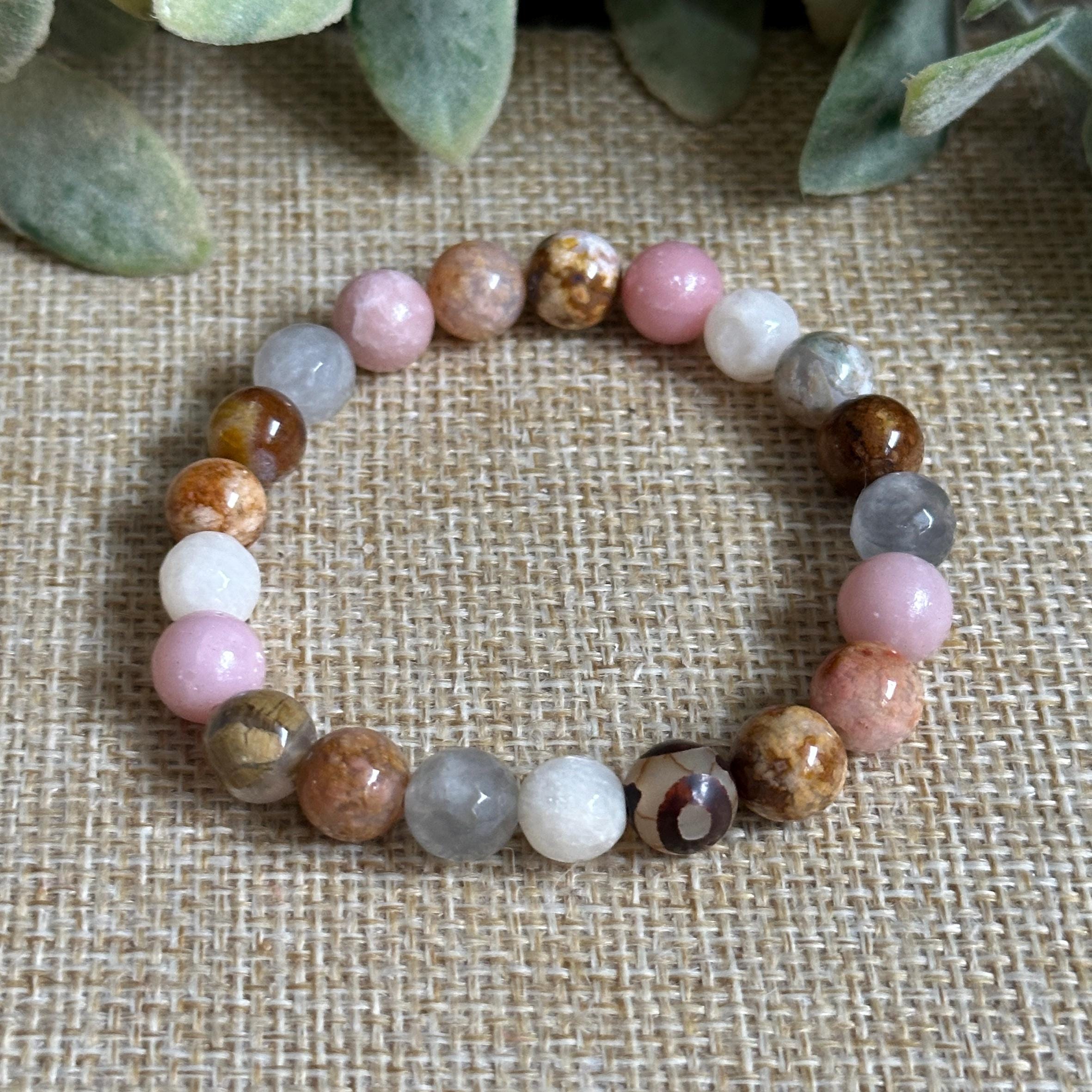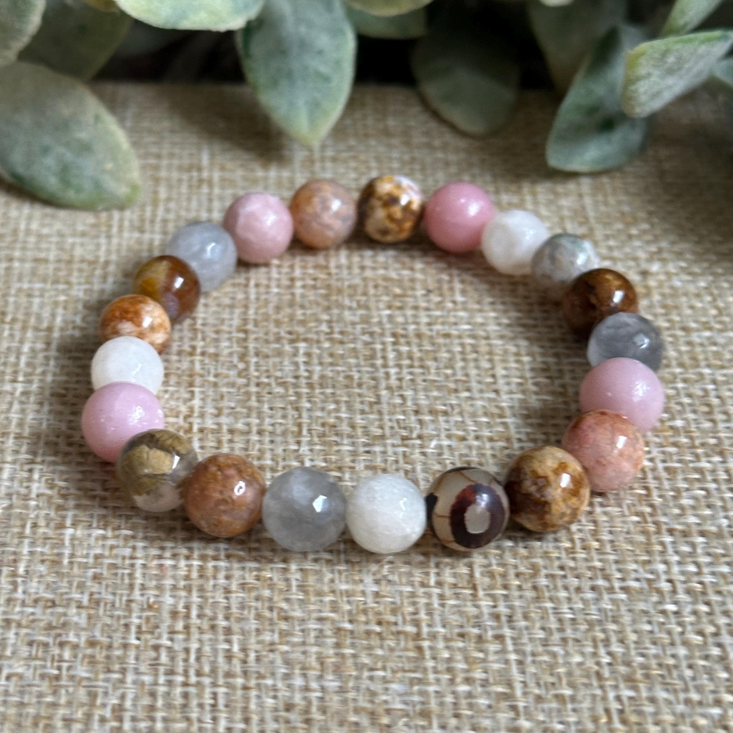 ~ Moss Agate ~ Pink Opal ~ Grey Quartz ~ Cream Moonstone ~ DZI Agate