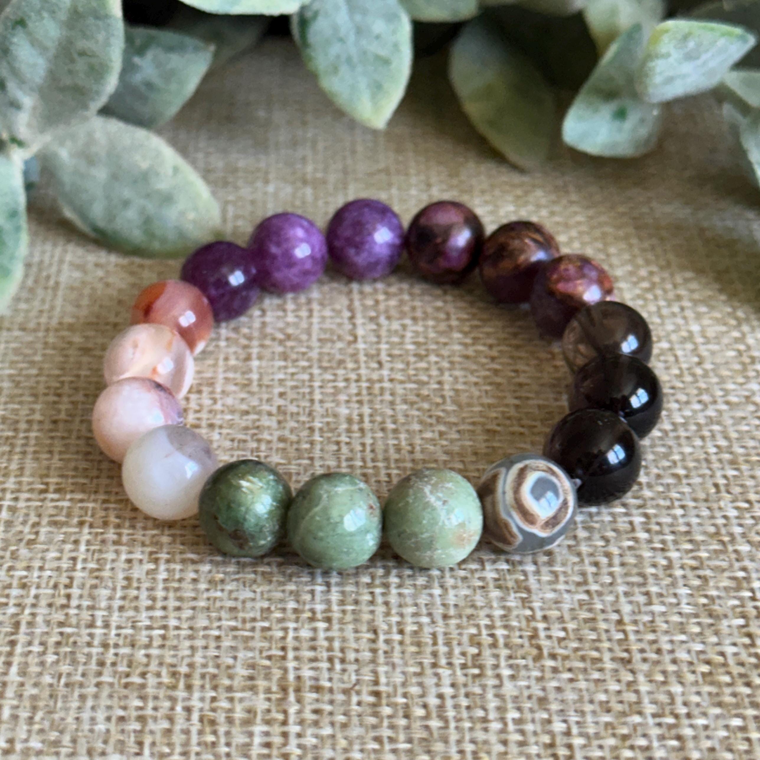 ~ Smoky Quartz ~ Sakura Agate ~ Lepidolite ~ Lepidolite in Bronzite ~ Chrysoprase