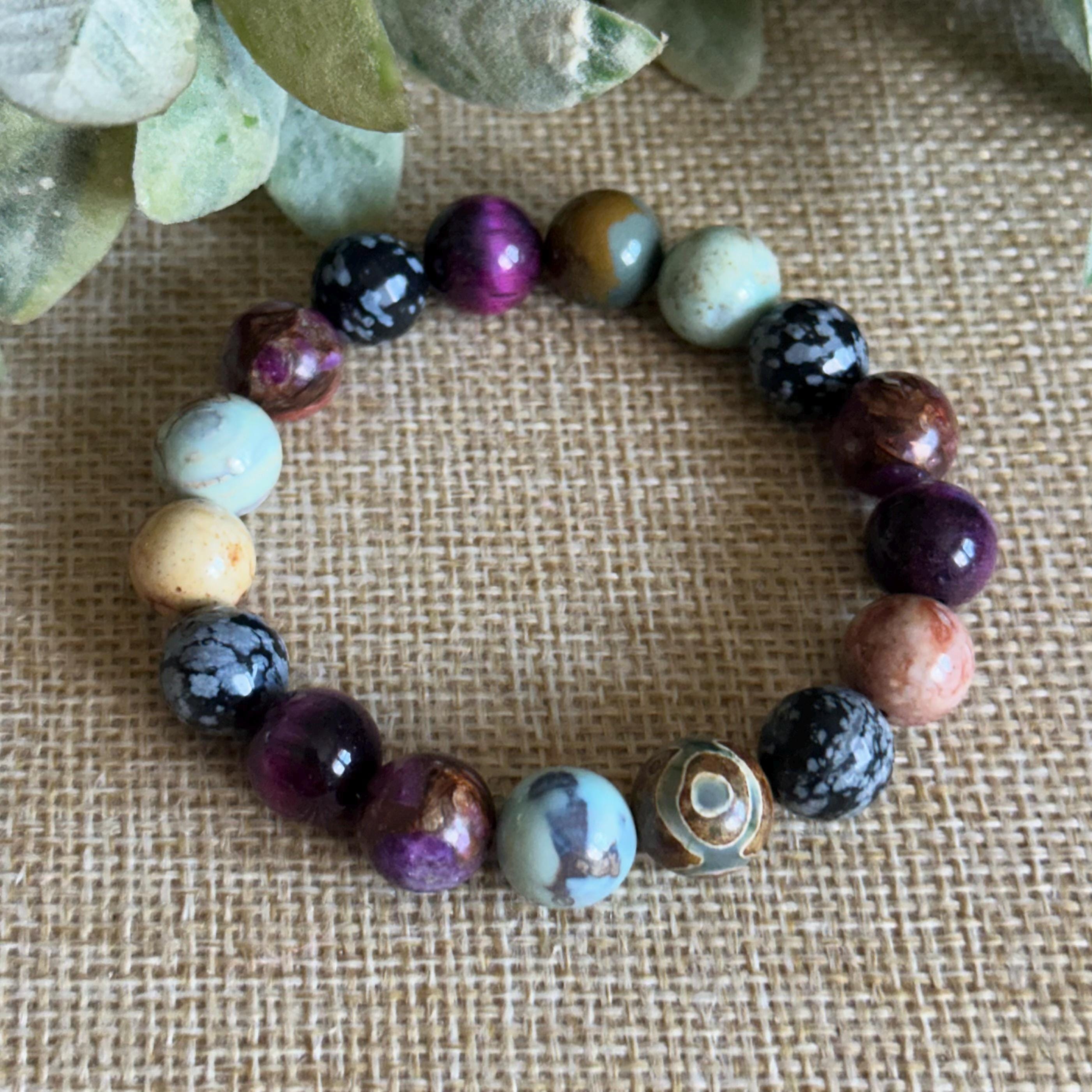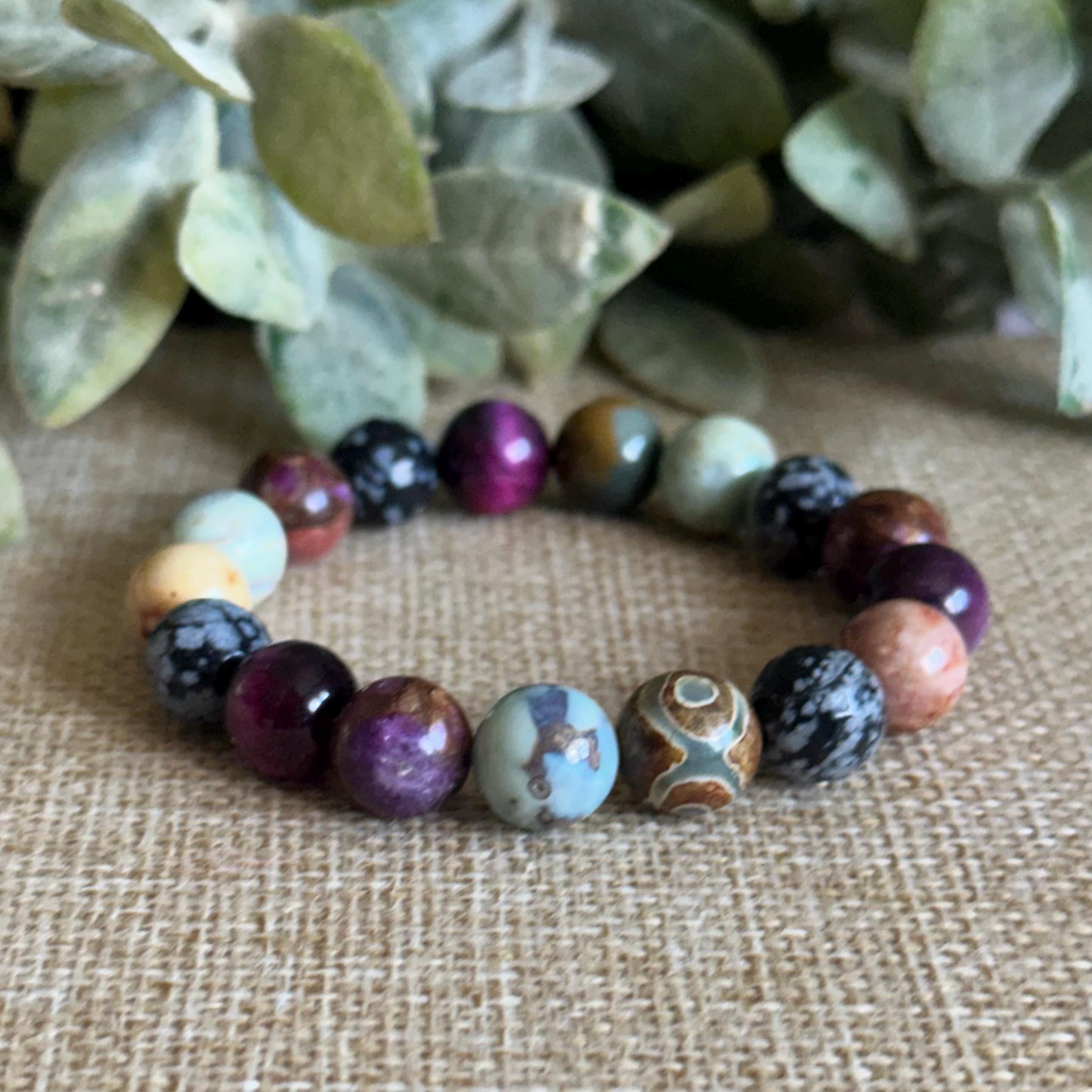 ~ Snowflake Obsidian ~ Lepidolite in Bronzite ~ Pink Tigers Eye ~ Owyhee Jasper ~ Aqua Terra Jasper