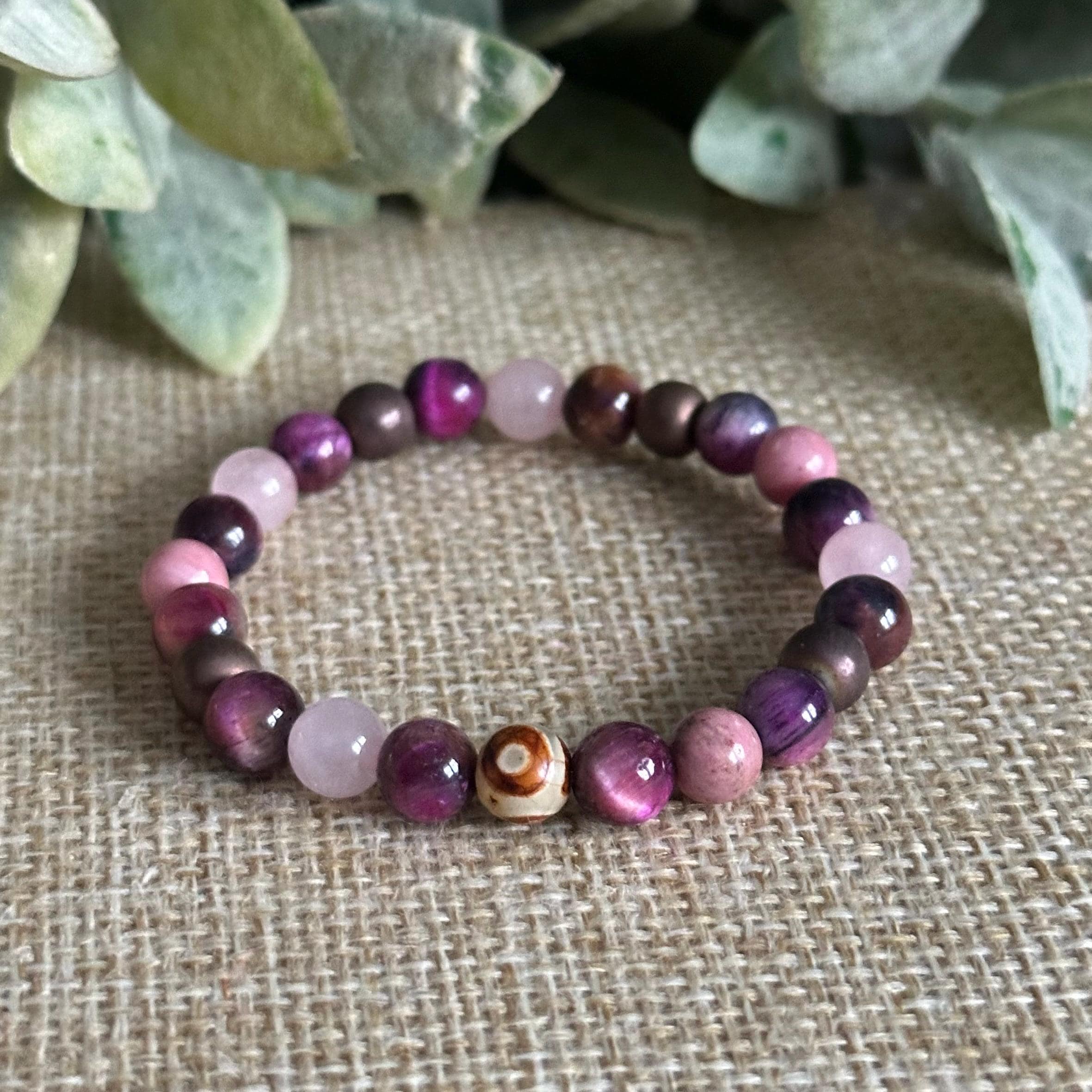 ~ Pink Tiger’s Eye ~ Rhodonite ~ Rose Quartz ~ Bronze Hematite ~ DZI Agate