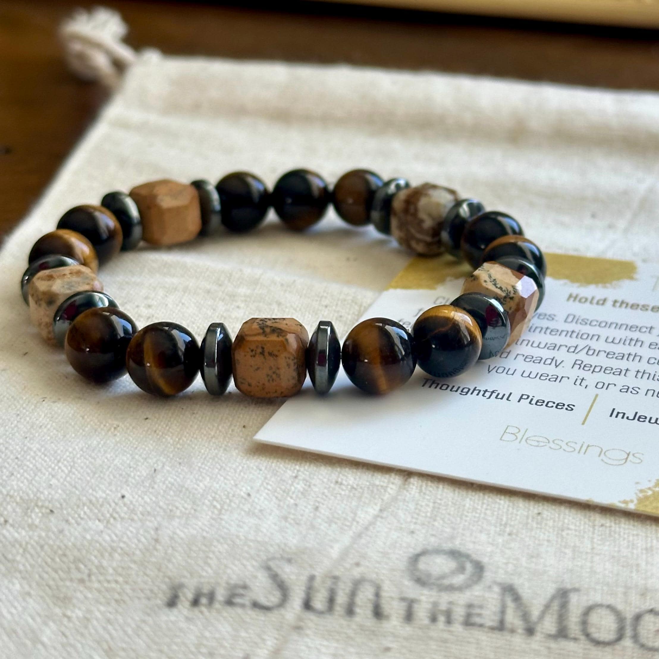 Designed with 8mm sized gemstones of various shapes, working together to anchor energy, strengthen confidence, and encourage a calm, steady presence.