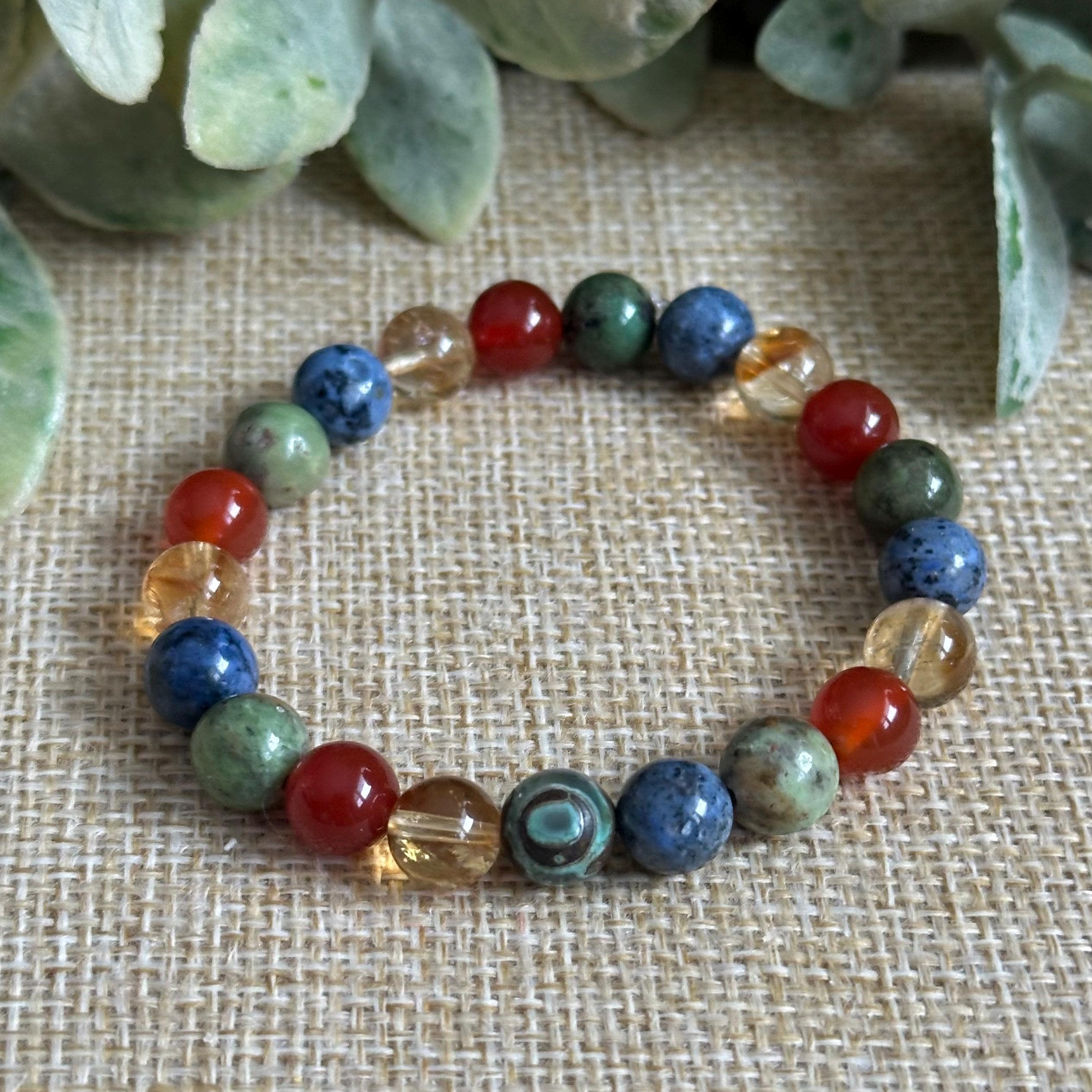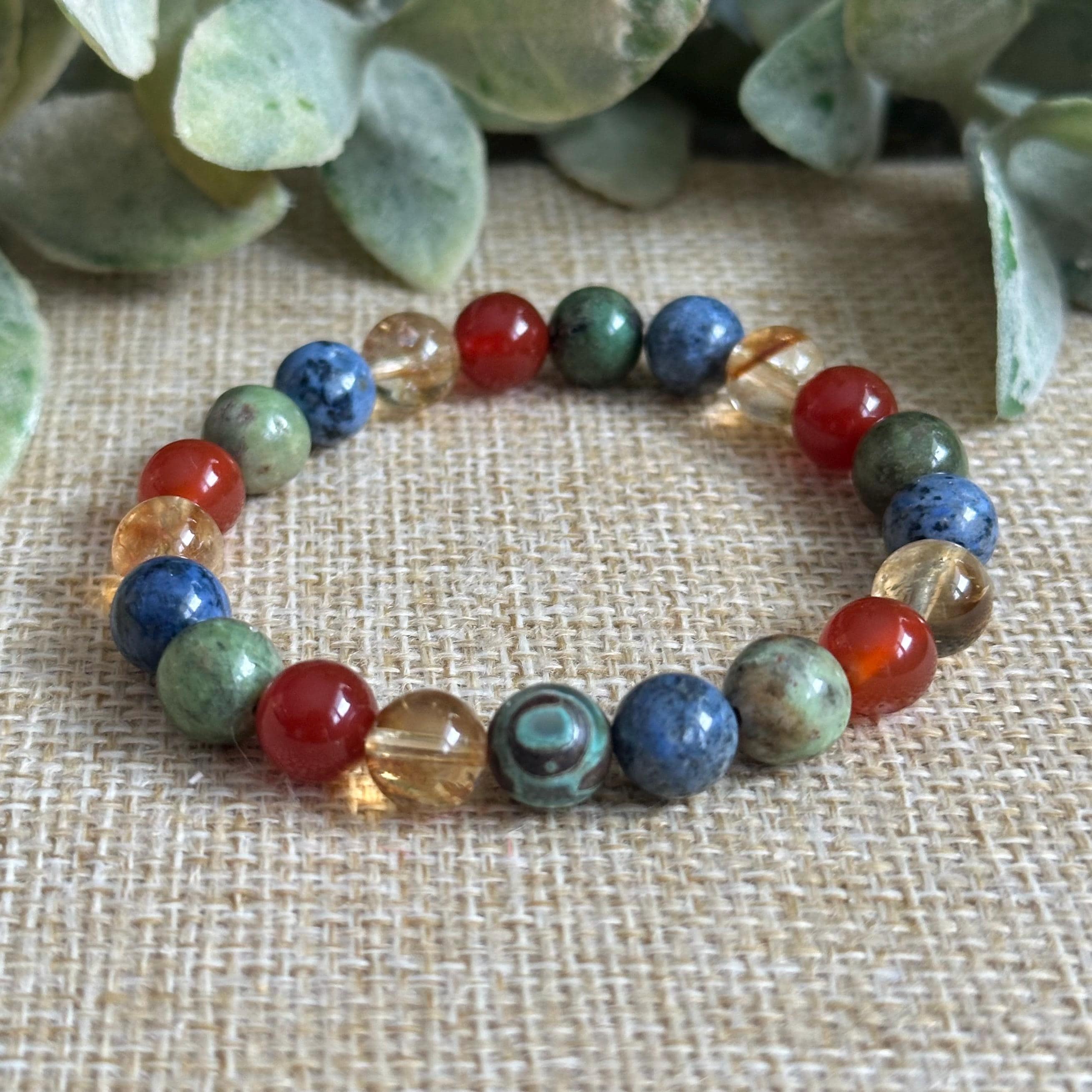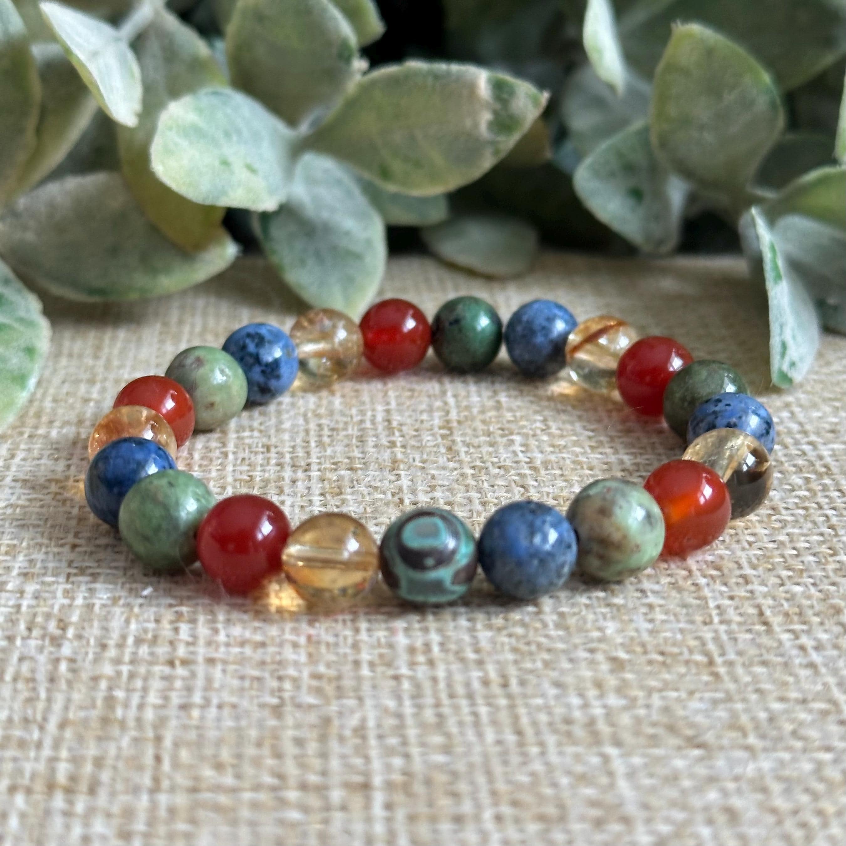 Designed with 8mm sized gemstones, this Four Elements bracelet brings together the natural forces of Earth, Air, Fire, and Water in one intentional piece. Each stone represents a core part of who we are. The body, the mind, the drive, and the emotional current beneath it all.