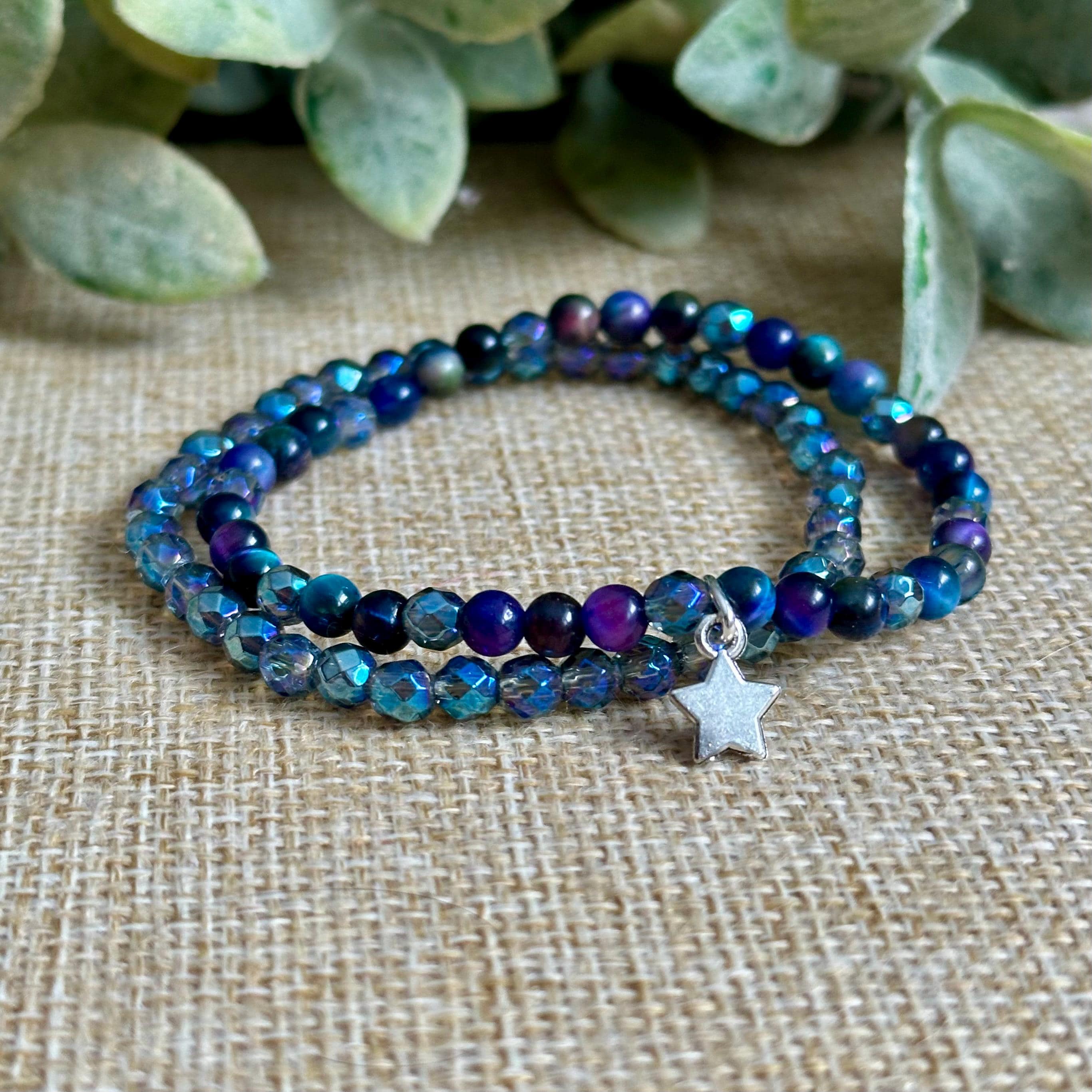 We've designed our Northern Lights Stacking stacker bracelet set with 4mm sized stones and an optional star charm.