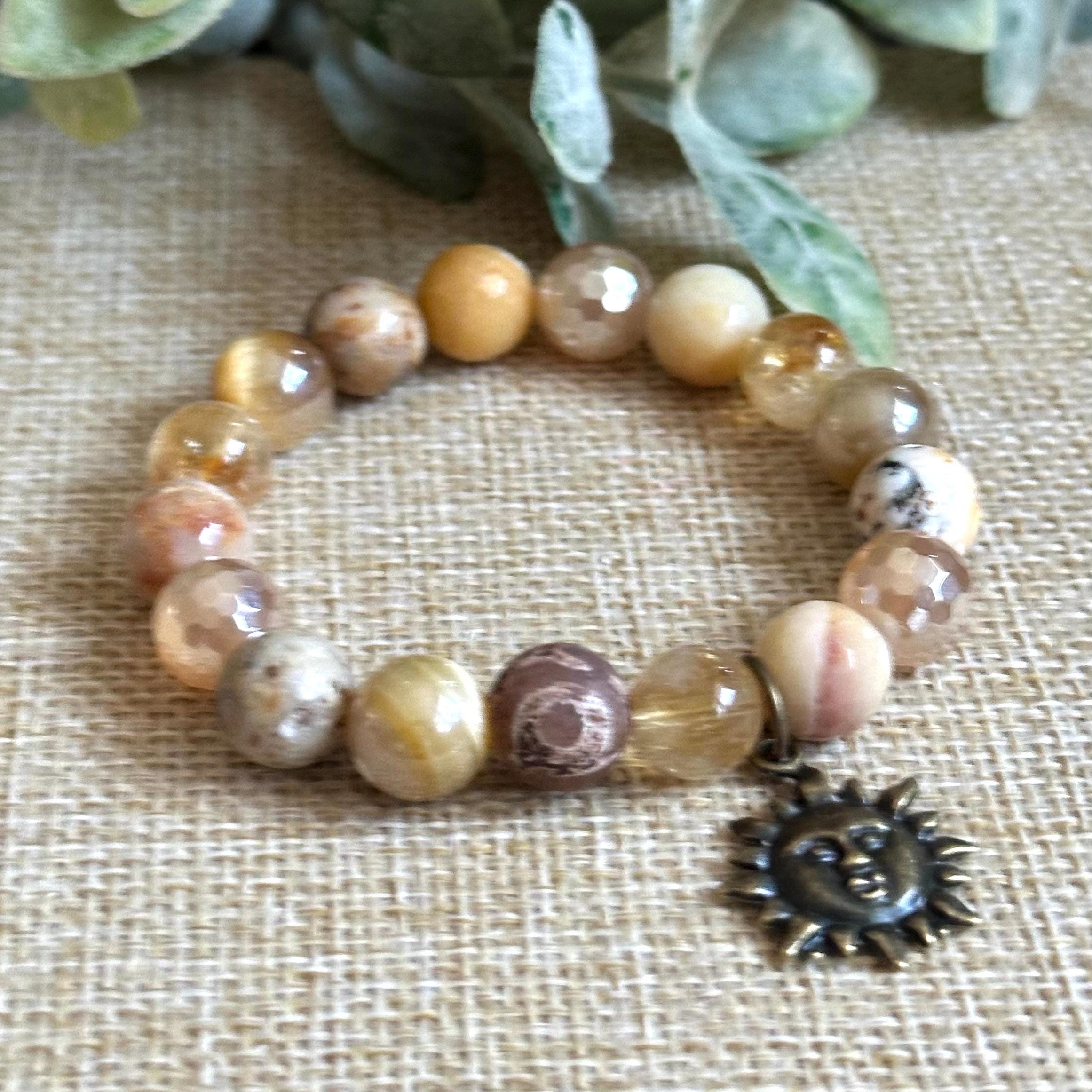 Designed with 10mm sized gemstones, this version of Golden leans into strength with a softer edge. The larger stones give it presence, while the blend of warm golds and creamy neutrals keeps it easy and wearable. It supports stepping into your power without forcing it. More calm confidence, less proving.