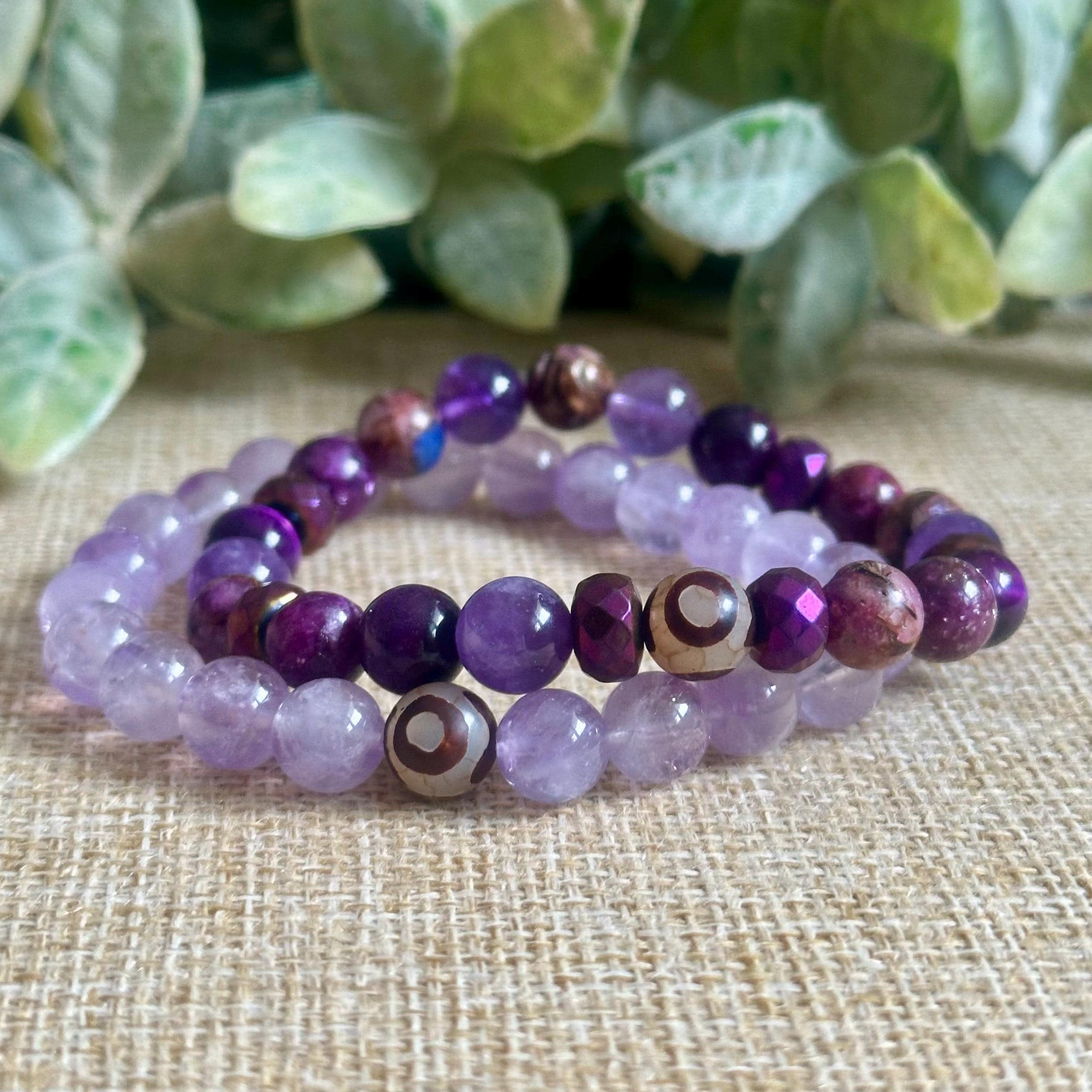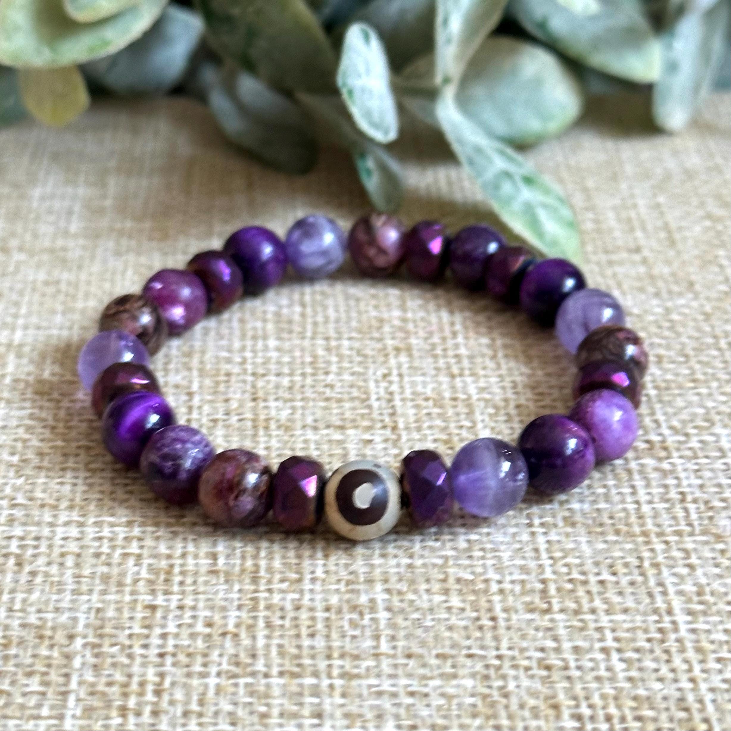 Designed with 8mm sized stones, this Crown Chakra bracelet blends calming purples with subtle grounding tones so you don’t drift off into space. It keeps you connected while still opening you up. Quiet, steady, and clear.