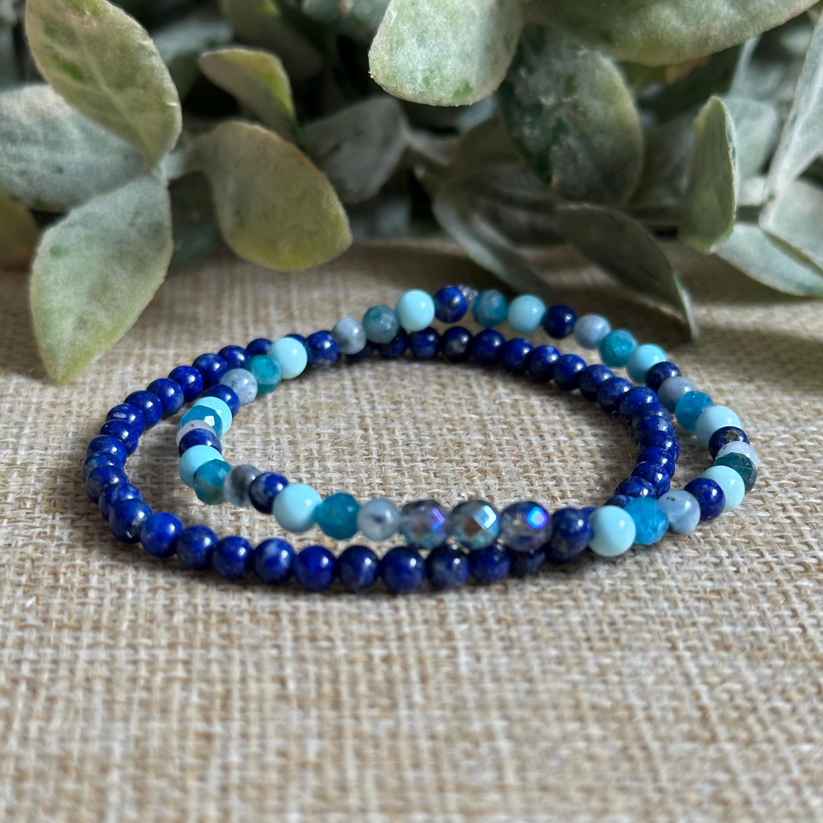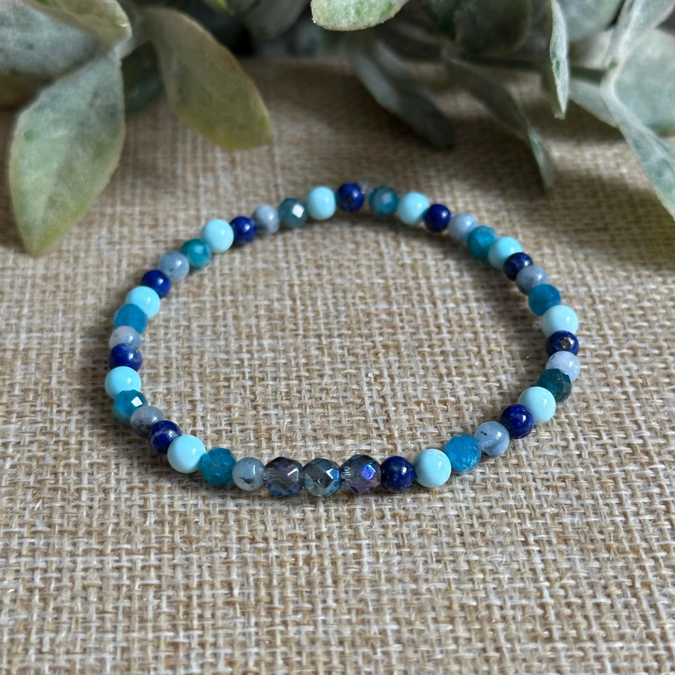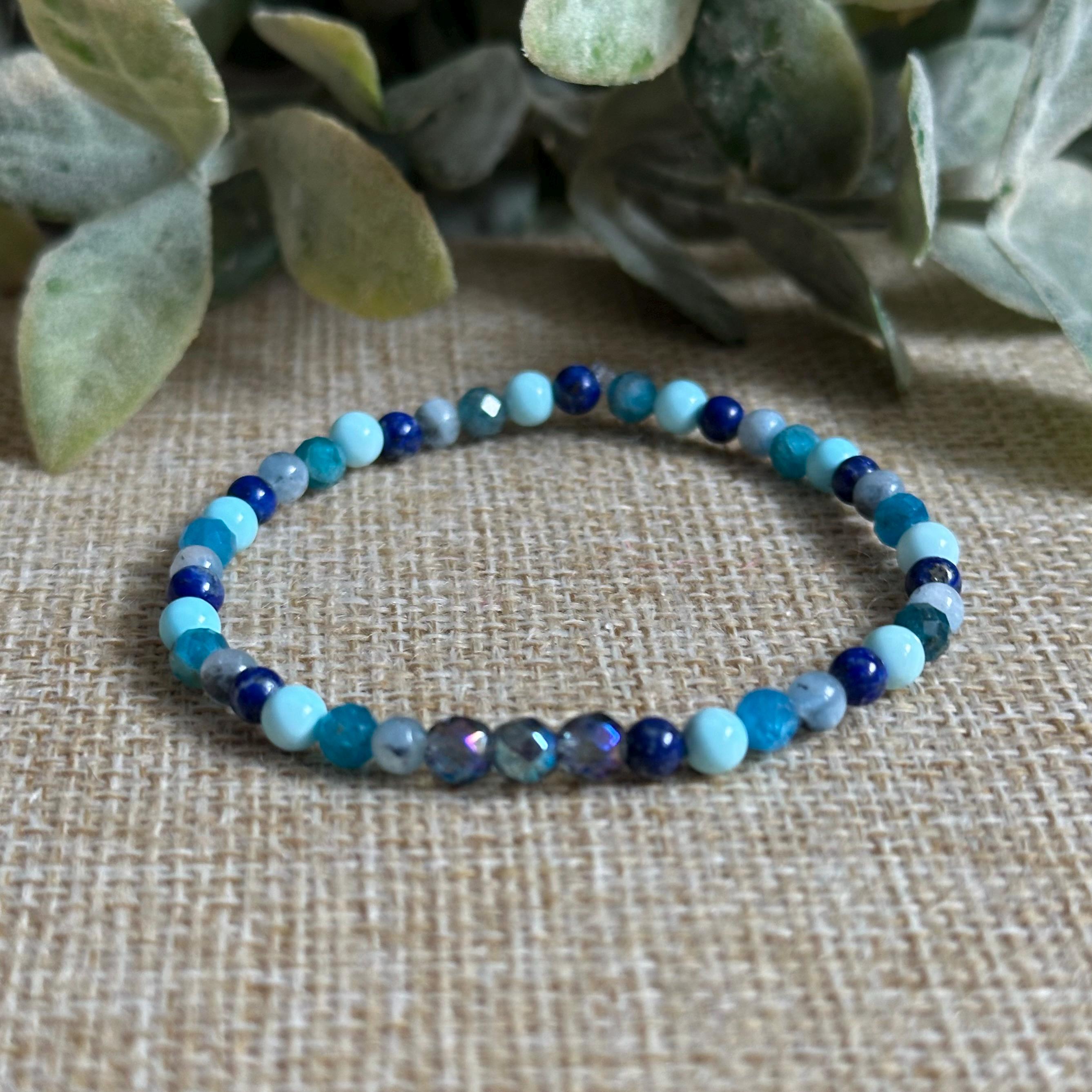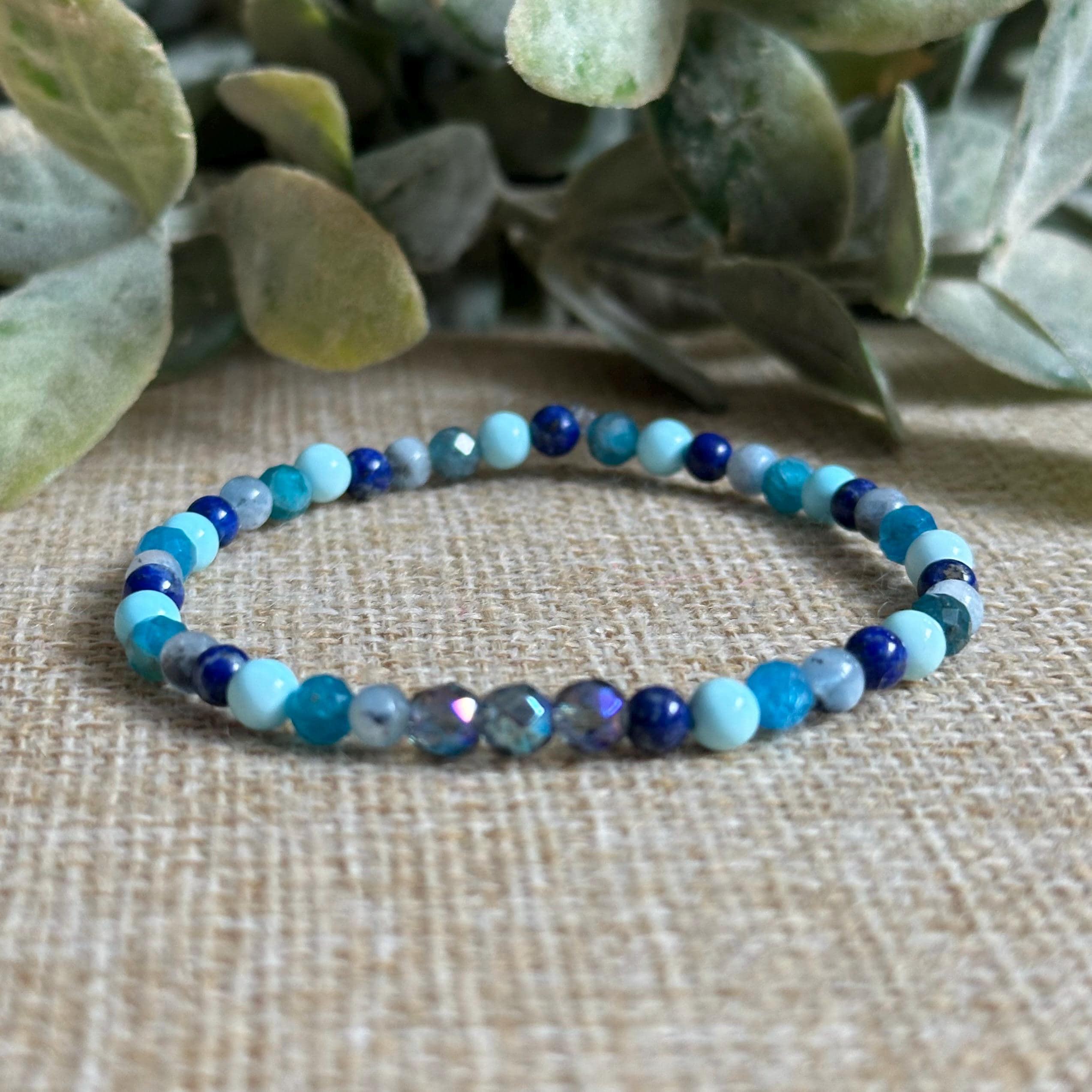 Designed with 4mm sized crystals and gemstones for the throat chakra, this bracelet supports speaking your truth in a way that feels natural and grounded. Not forced. Not rehearsed. Just clear.